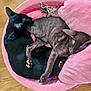 • Xya. a rejoint le concours — aidez-le/la à gagner de superbes lots ! animal, bed, black_cat, brown_cat, cat, companion, cozy, curled_up, cute, domestic_animal, fur, indoors, nap, pet_bed, pink_bed, relaxed, resting, sleeping, two_animals, wooden_floor